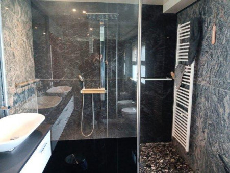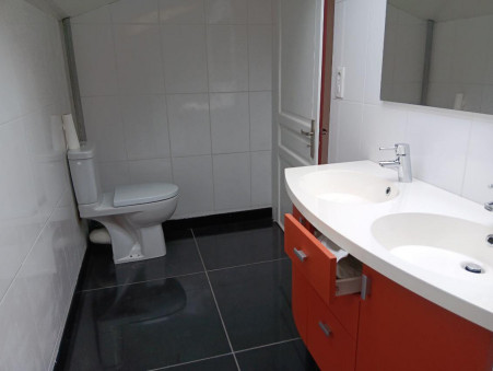 le premier étage se compose de 'une grande pièce communicante avec 2 chambres séparées avec des placards, et une jolie salle d'eau et un WC .