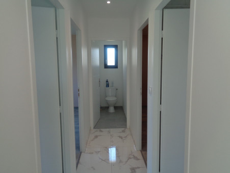 Le logement est de plein pied et sans étage. L’entrée, équipée d’un grand placard avec penderie, ouvre sur un vaste séjour de 50 m2 avec cuisine ouverte, 2 portes fenêtres donnant sur le jardin, il communique avec le garage. Le coin nuit, séparé du séjour par une porte, comporte 3 chambres de 12m2 équipées chacune d’un vaste placard avec penderies, une salle de bain avec wc, et un second wc séparé.