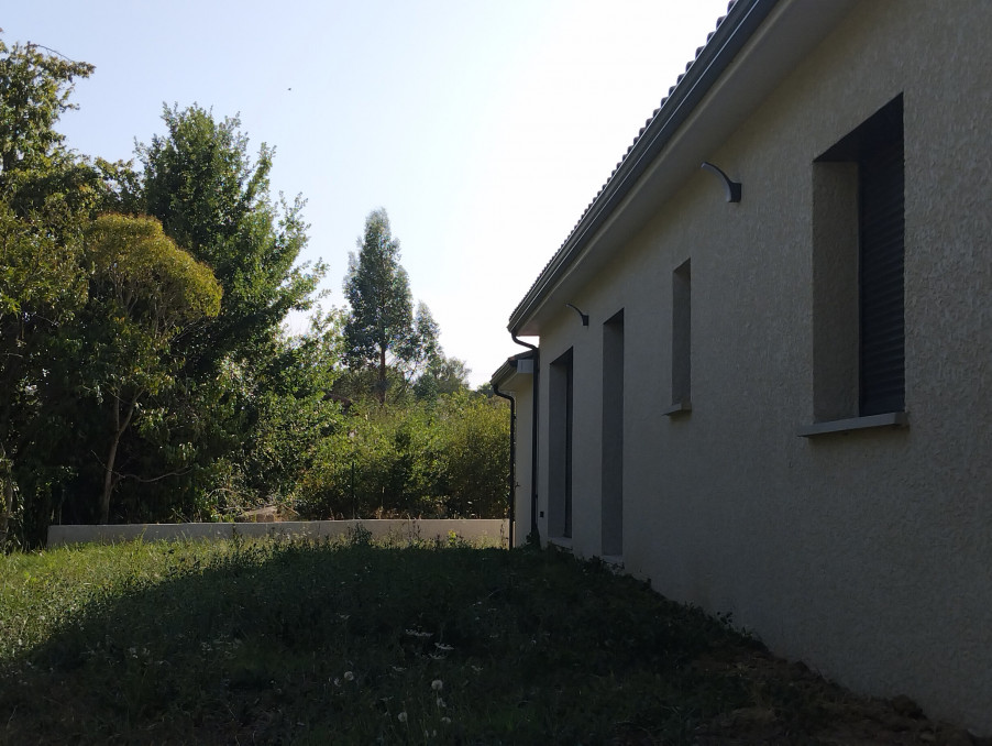 La maison se trouve au centre de la parcelle de 620 m2, qui est entièrement clôturée par un muret avec grillage métallique. L’accès sur la rue se fait au moyen d’un portail motorisé avec visiophone.