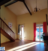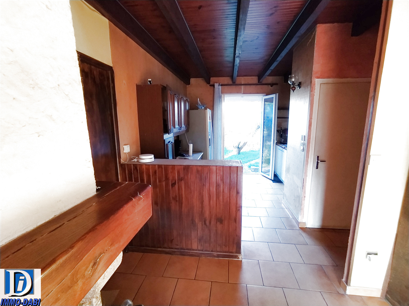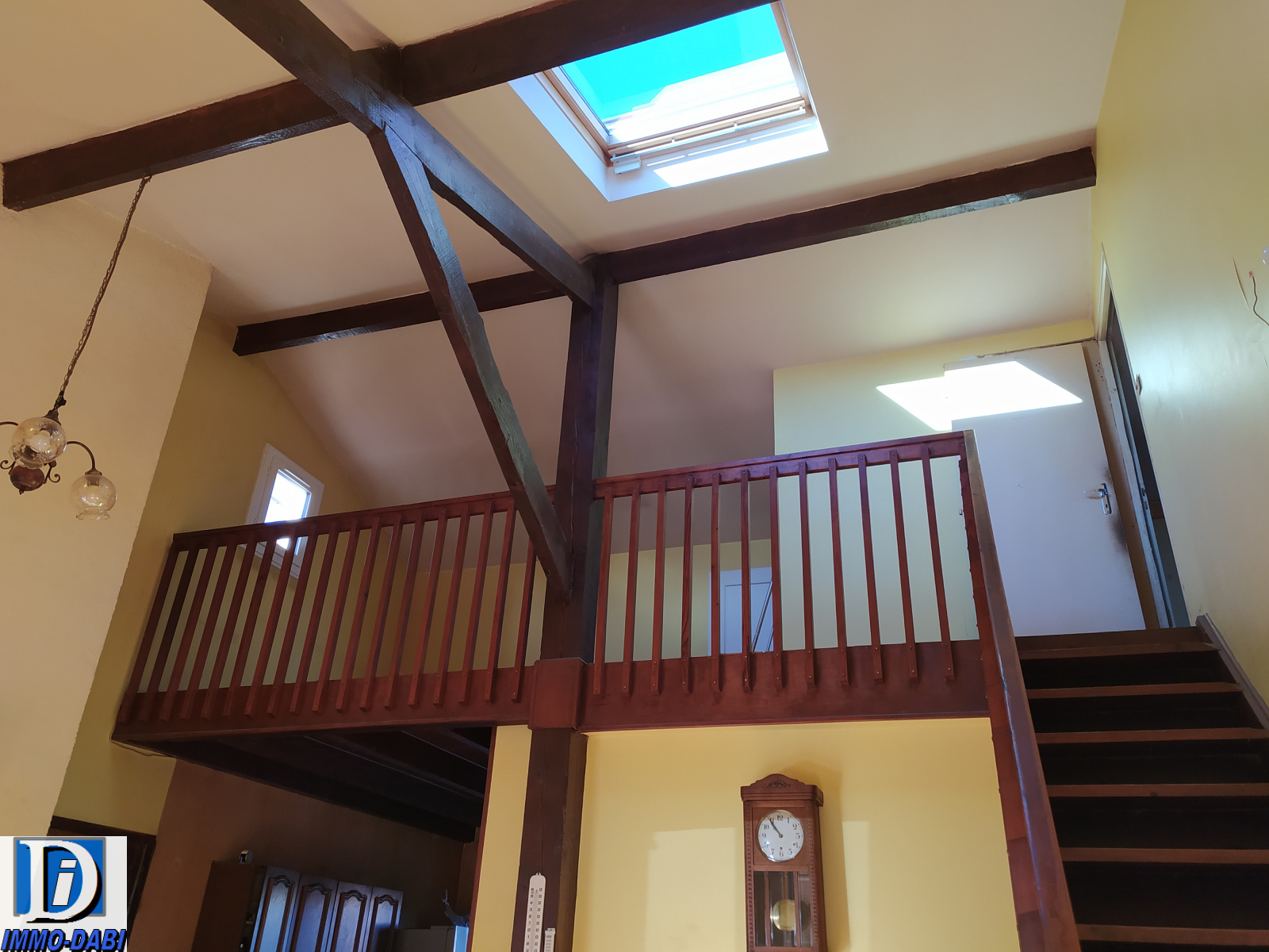 Construction traditionnelle de 1986, 91m2 habitables constitués au rdc d’un ensemble séjour-cuisine de 30 m2, équipé d’une cheminée avec insert à bûches. Le côté nuit comporte un wc séparé, une salle de bain de 4 m2, et 2 chambres de 10 et 11 m2.