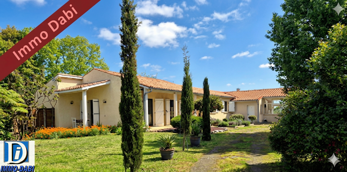 Ce bien atypique possède une grande piscine (5x10 m), une dépendance de 50 m² un garage de 32 m².