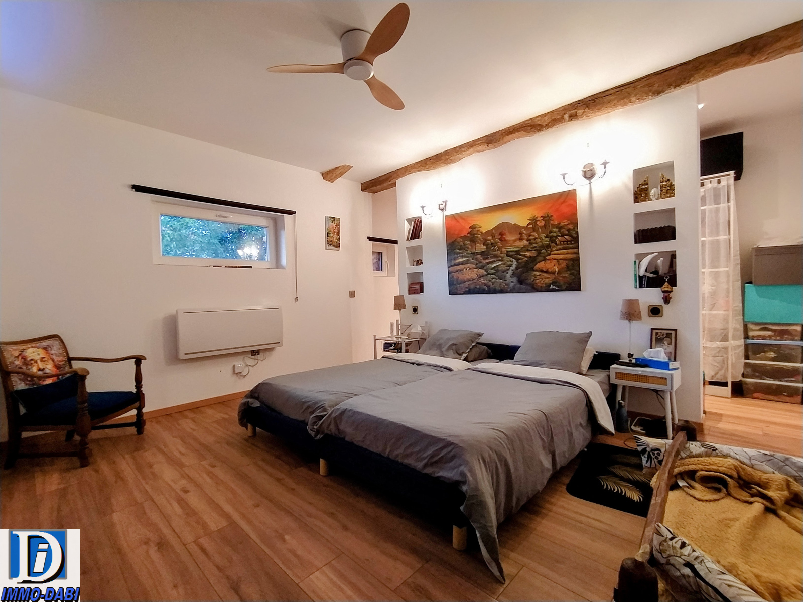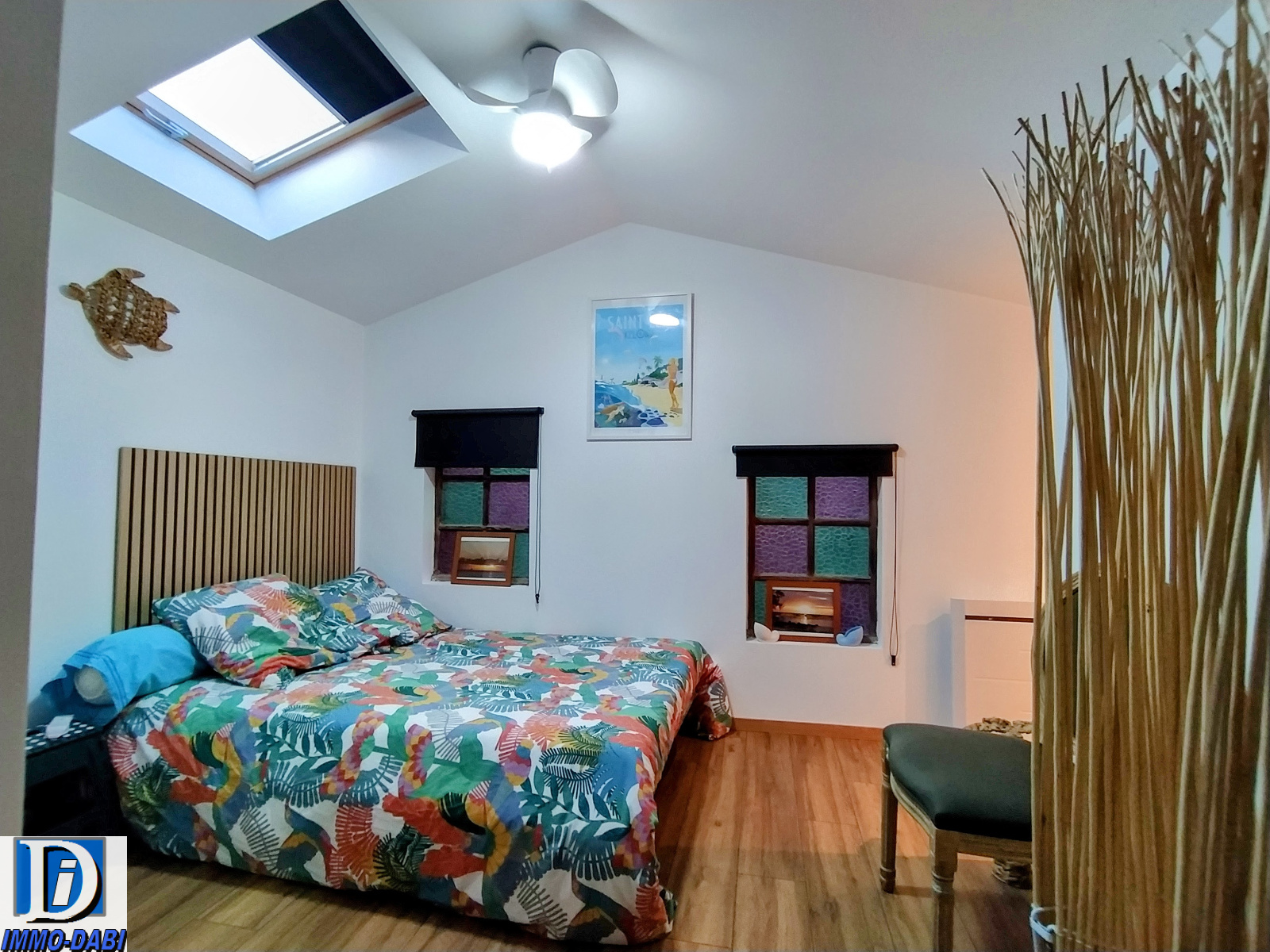 Une troisième chambre de 12 m2 avec un espace attenant de rangement sous comble de 5 m2, une quatrième chambre de 12 m2 comportant un espace semi séparé pouvant servir de bureau ou de dressing, et un espace supplémentaire de rangement sous comble de 10 m2.